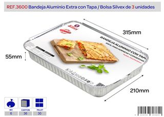 BANDEJA ALUMINIO EXTRA + TAPA, 3 UNIDADES 3600