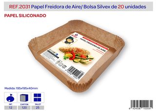 PAPEL FREIDORA DE AIRE 195X195X40 SILICONADA 20 UN
