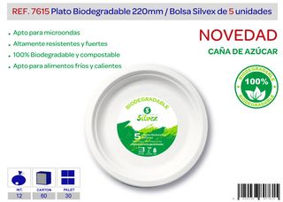 PLATO BIODEGRADABLE 220 MM. 5 U. CANA DE AZUCAR