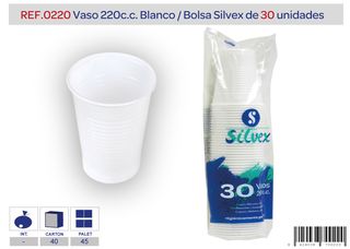 VASO PLASTICO 220 CC. BOLSA DE 30 UNIDADES REF0220